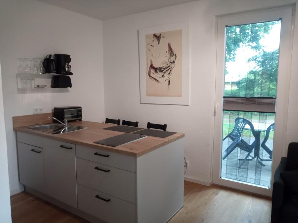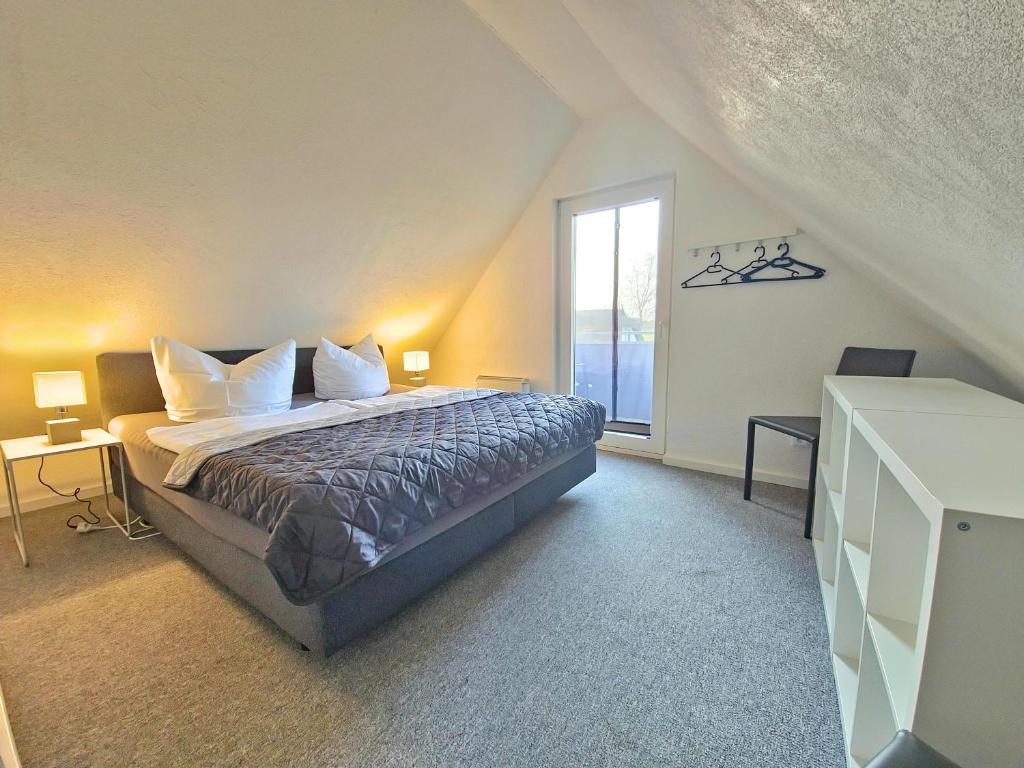 Hier finden Sie wie in Ferienwohnung 1 oben den Schlafbereich mit großem Doppelbett. Im Erdgeschoss befindet sich das offene Wohnzimmer incl. Schlafsofa, moderner Küche und hochwertigen Holzböden. Auf Anfrage können wir Hunde akzeptieren.