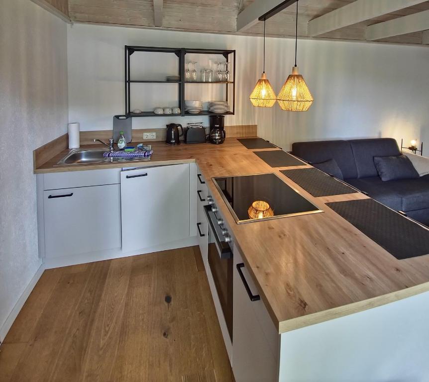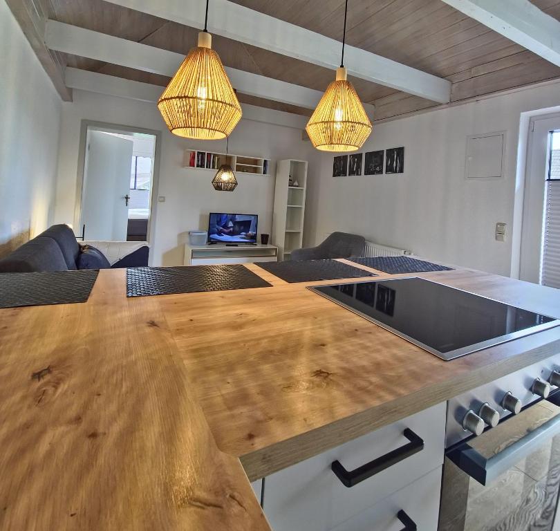 Hunde sind willkommen in unserer großen ebenerdigen Wohnung mit eigener Terrasse und neuer hochwertiger Küche.